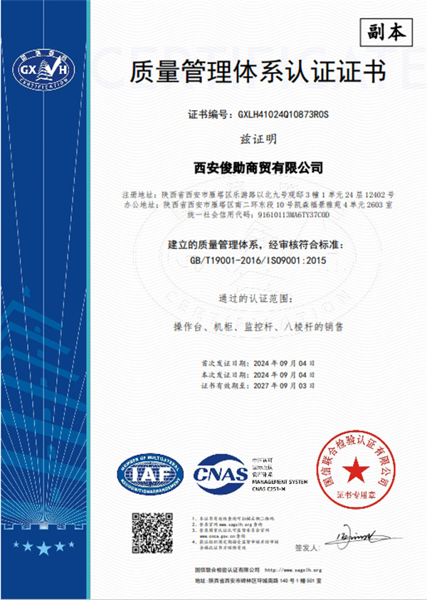 质量管理体系认证证书