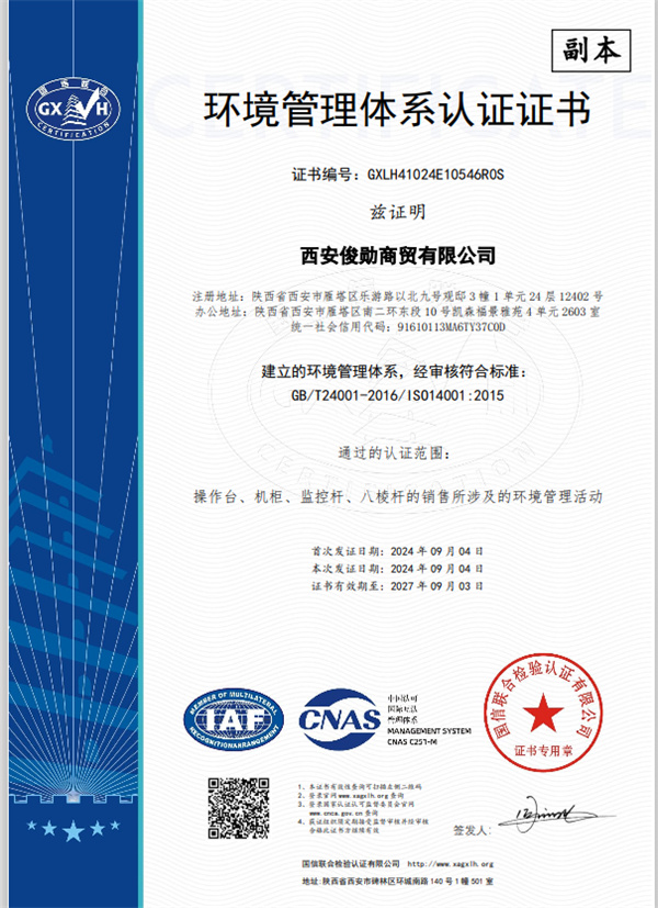 环境管理体系认证证书